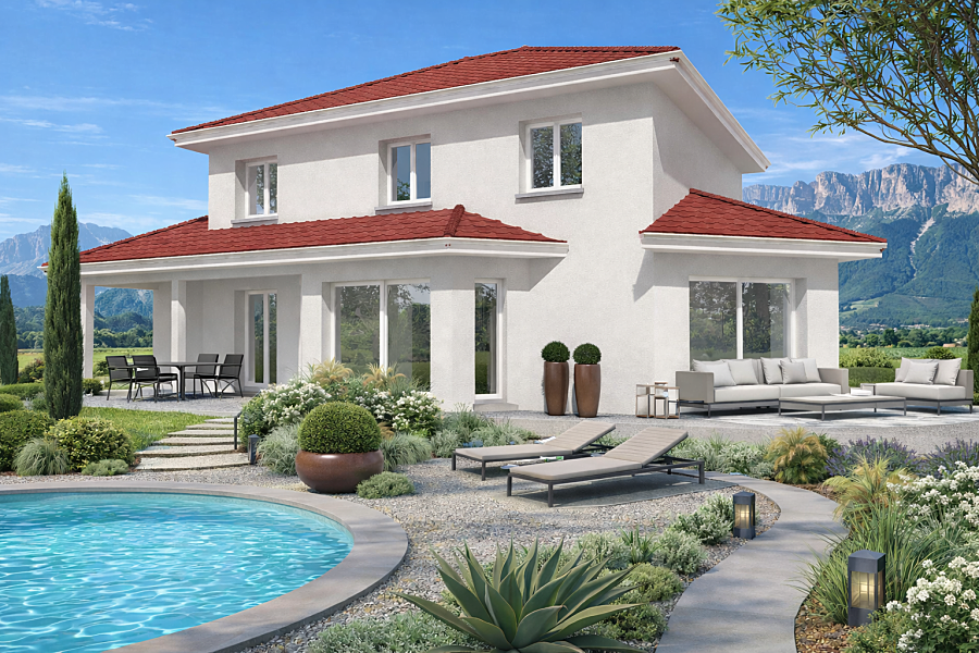 Villa à l’architecture contemporaine. Ses deux niveaux superposés permettent de minimiser l'emprise au sol du bâtiment. Elle approche les 140m² et vous offre 5 chambres et tout le confort nécessaire. Très belle pièce de vie ouverte baignée de lumière, suite parentale au rez de chausée. Garage double.